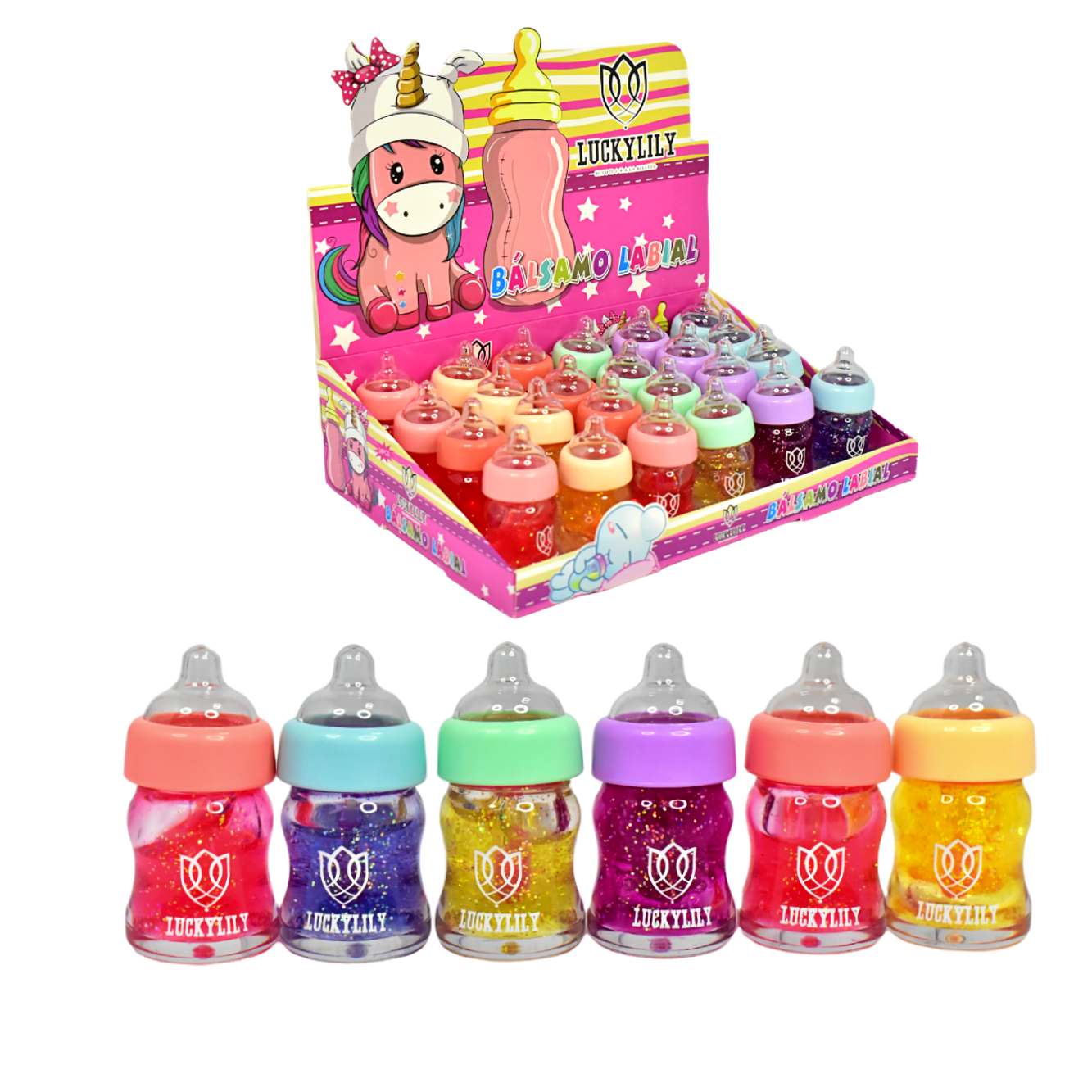 Brillo mágico labial en presentación de biberón Lucky Lily