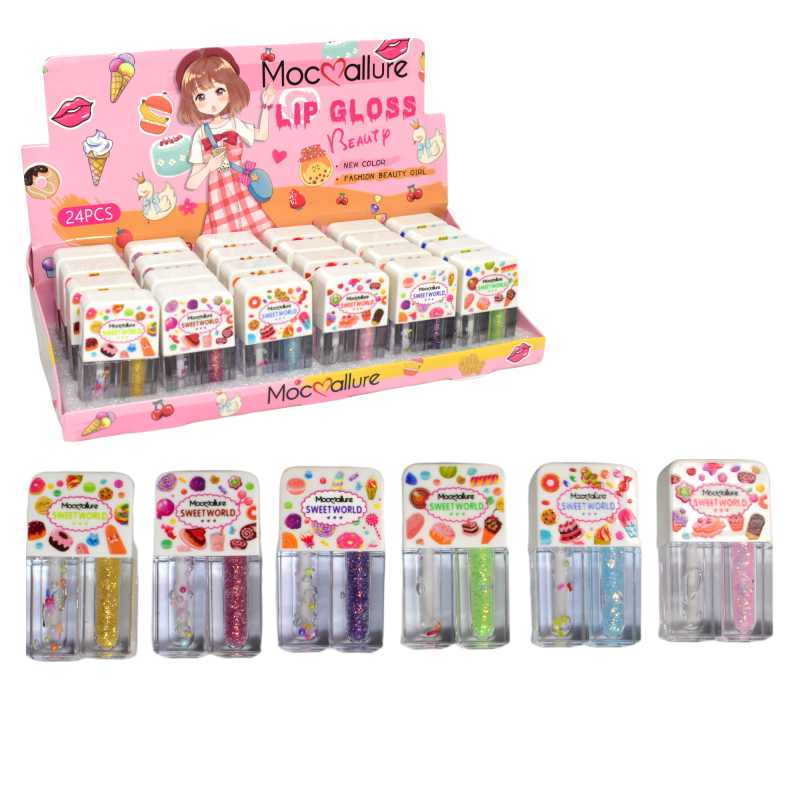 Brillos dobles en su presentación Sweet World con diseños de colores son ideales para resaltar y darle vida a tus labios, su acabado conservador te hará lucir increíble en cualquier evento.