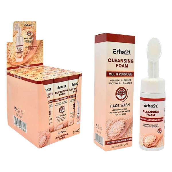 La línea de espumas faciales ERHA 21 ofrece diferentes presentaciones con ingredientes naturales como arroz, aloe vera, coco o carbón activado. Cada espuma está formulada para satisfacer necesidades específicas de la piel: limpieza, hidratación, control de grasa o desintoxicación.