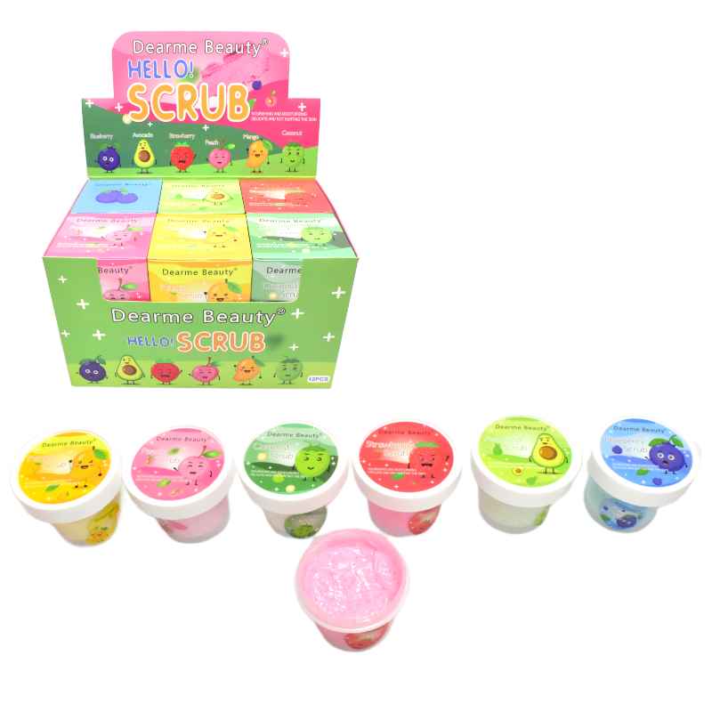 Exfoliante corporal de la marca Dearme Beautyen su presentación a base de frutas, crea una capa que actúa con sus partículas exfoliantes dejando la piel suave, limpia y con un aroma natural delicioso.