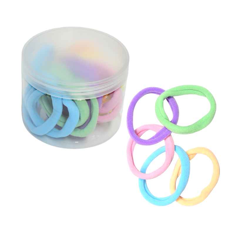 Kit de colas elásticas de colores pastel en su presentación de frasco transparente son ideales para sujetar el cabello de forma segura y sofisticada, su variedad de tonalidades te permite combinarlas con cualquier atuendo.