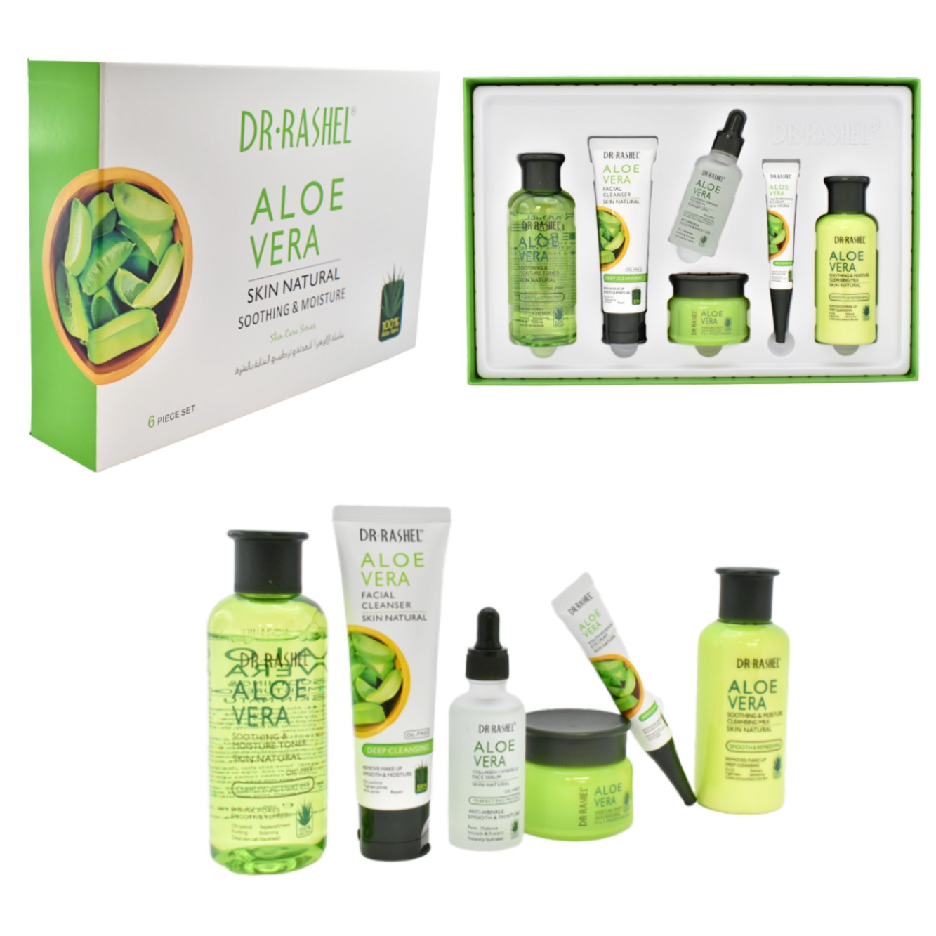 Kit de limpieza facial completo aloe vera de 6u. Dr Rashel