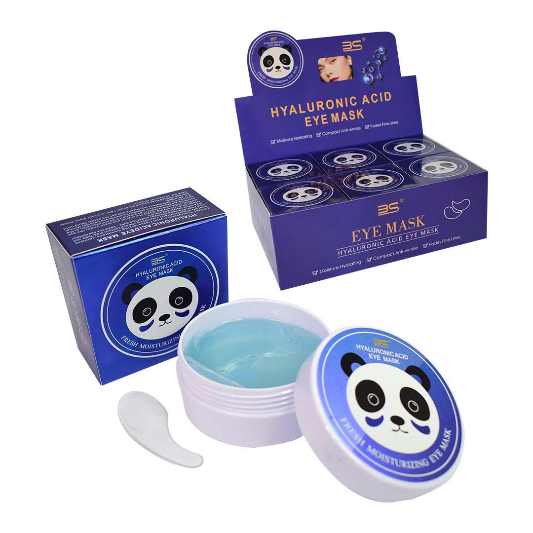 Parches para ojeras de la marca BS en su presentación de tarro con diseño pandas color azul y con fórmula de ácido hialurónico son ideales para suavizar, aclarar, hidratar y mejorar visiblemente la apariencia de la piel. Sus propiedades humectantes mantienen y promueven la elasticidad en la piel.