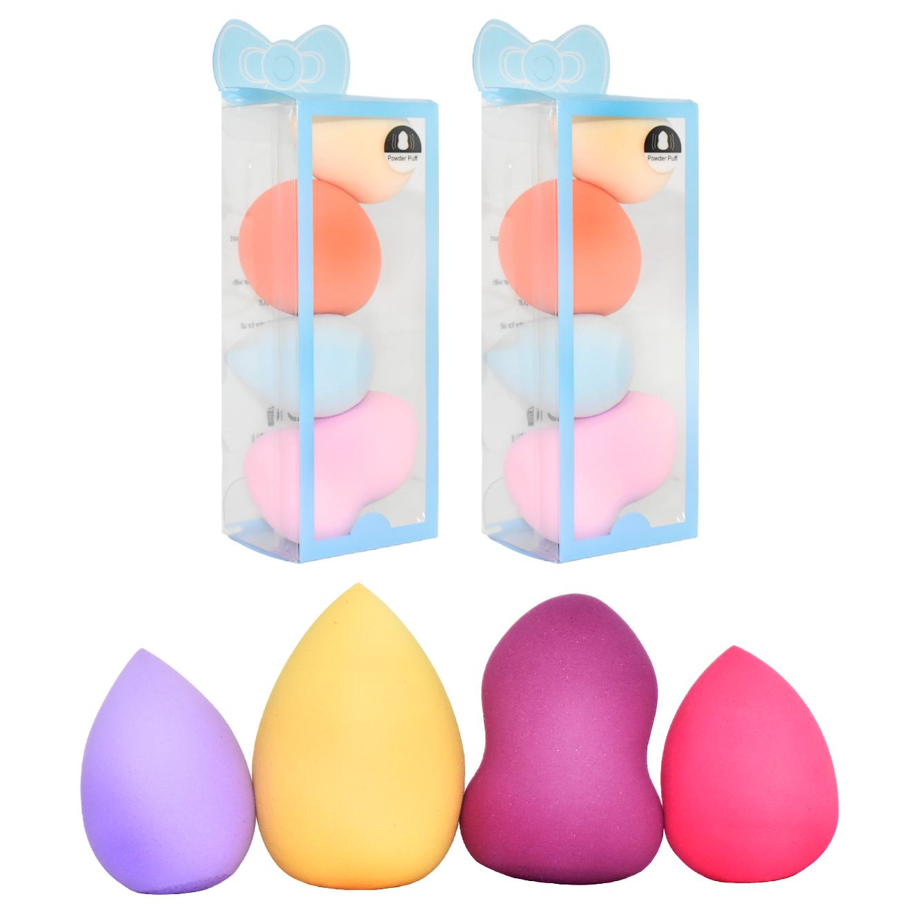 Set de 3 esponjas para maquillaje Powder puff colores surtidos con moño